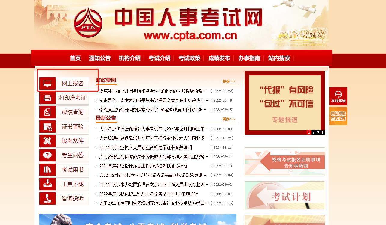 2022年中級經(jīng)濟(jì)師官方報名入口暫未開啟,按照人力資源社會保障部人事考試中心要求,經(jīng)濟(jì)專業(yè)技術(shù)資格考試將在全國范圍內(nèi)實行統(tǒng)一網(wǎng)上報名。為便于考試報名和相關(guān)工作的統(tǒng)一開展,應(yīng)試人員須通過中國人事考試網(wǎng)(網(wǎng)址:http://www.cpta.com.cn/index.html)進(jìn)行網(wǎng)上報名和網(wǎng)上繳費。