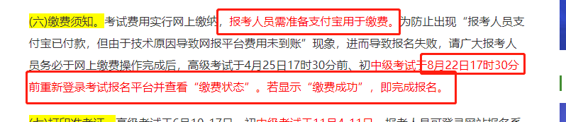 根據(jù)2022年各地區(qū)發(fā)布的考務(wù)信息來看,報(bào)名費(fèi)用及繳費(fèi)方式略有差異,考生可查看(>>各地區(qū)考務(wù)信息匯總)繳費(fèi)方式小編為大家舉例部分地區(qū),主要分為支付寶支付、銀聯(lián)卡、易寶支付等方式,其他未提及繳費(fèi)方式的地區(qū)需要以報(bào)名界面提示為準(zhǔn):