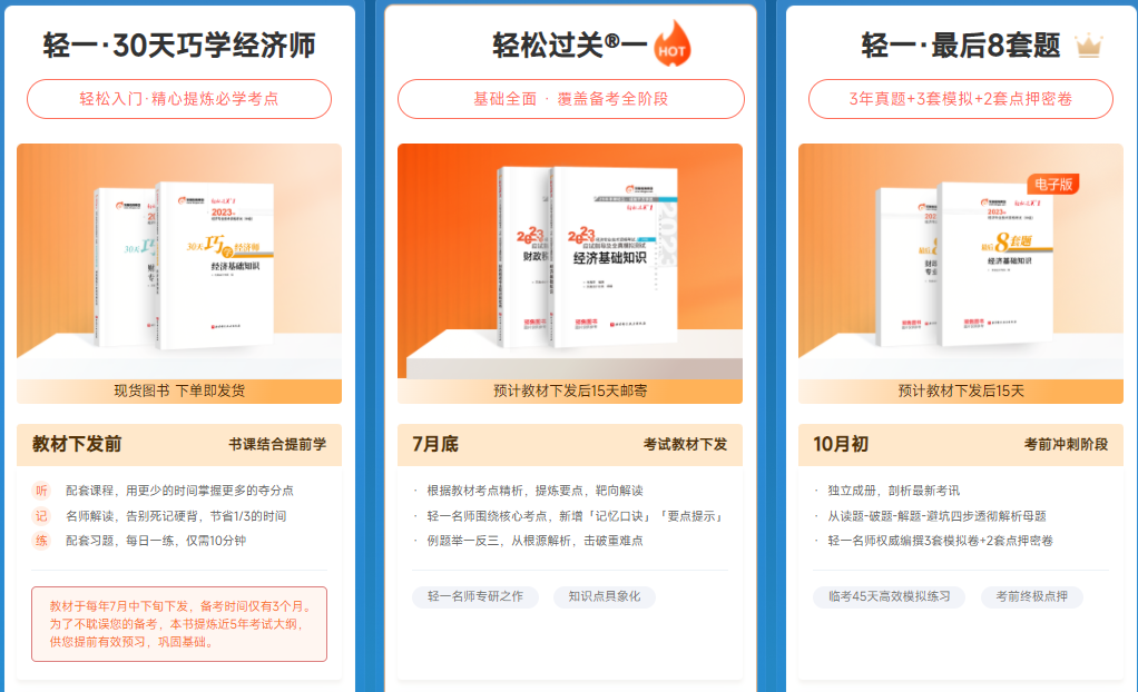 《輕一30天巧學經(jīng)濟師》是輕一套餐之一,1月底開始郵寄,想提前備考的同學們可點擊下方圖片,進入可查看詳情: