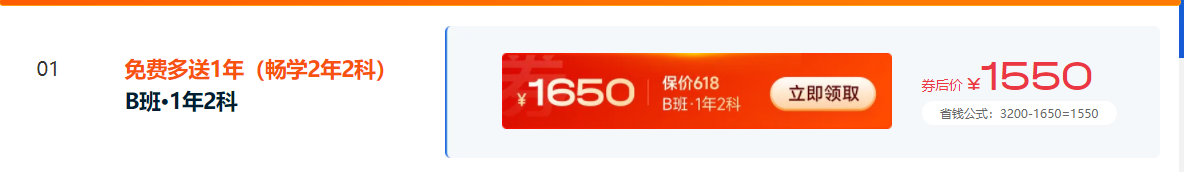 活動(dòng)一:B班一年兩科免費(fèi)多送一年,暢學(xué)兩年兩科