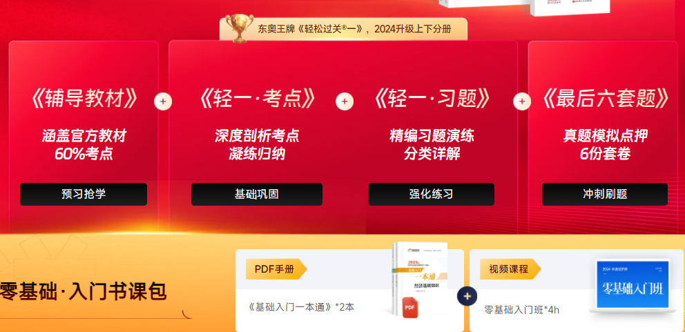 2024年中級經(jīng)濟師全新考季正式開始,無論同學們是“中級經(jīng)濟師”的新考生或老同學,備考沒有“短途”可走,找到適合自己的復習資料直觀重要,尤其是在中級經(jīng)濟師官方教材發(fā)布之前,不知道從哪里開始學,學什么的同學,2024年中級經(jīng)濟師《輕一》圖書組合全新升級,八本書覆蓋備考的全階段,價格僅需兩位數(shù)!在品質(zhì)和價格之間無需做選擇,我們都要!
