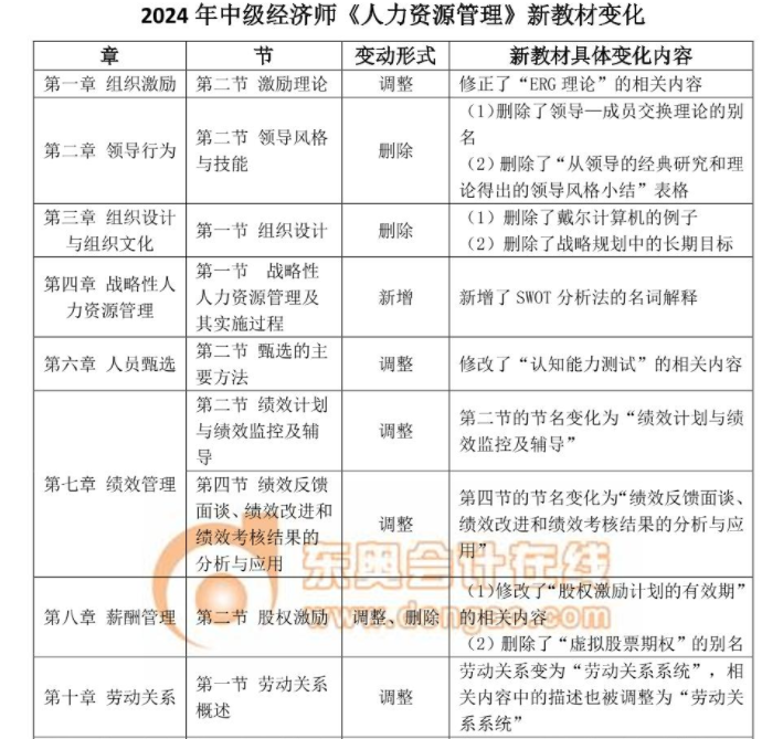 2024年中級經(jīng)濟師考試官方用書為中國人事出版社出版的,作為官方用書,其變化受到考生們的很大關注,下面的教材變化是由東奧教研團隊老師們總結(jié)歸納的,詳情如下: