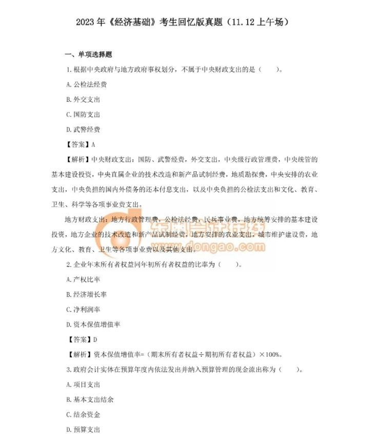 ?2023年中級經(jīng)濟師《經(jīng)濟基礎(chǔ)》回憶版真題(三)?
