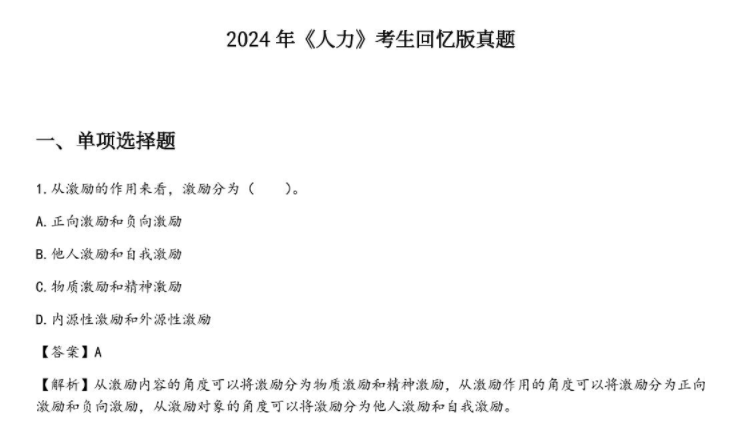 已經(jīng)參加2024年中級經(jīng)濟(jì)師《人力資源》考試的同學(xué)們請注意,為了快速幫助各位考生了解考試內(nèi)容,東奧教研團(tuán)隊根據(jù)考生回憶將考試真題及答案解析總結(jié)如下,真題為考生回憶版(隨著考試的進(jìn)行不斷更新內(nèi)容),考生可持續(xù)關(guān)注下載頁面,現(xiàn)階段先參考第一版!