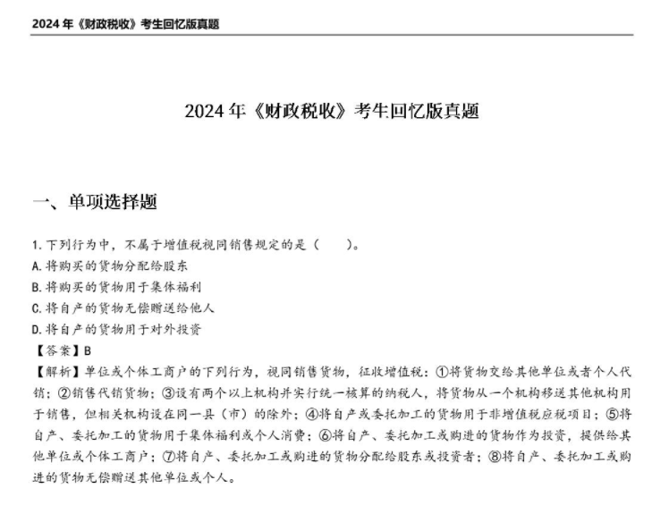 ★2024年中級經(jīng)濟師《財政稅收》考試真題回憶版★