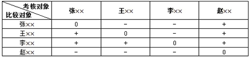 本題考查一一對比法。李××一個“+”都沒有,所以績效最差。