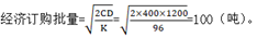 企業(yè)為了降低庫存成本,采用固定訂購量系統(tǒng)控制庫存,某種原材料的年需求量為1200噸,單次訂貨成本為400元,每年每噸的持有成本為96元,則該種原材料的經(jīng)濟(jì)訂購批量為( )噸。(根據(jù)真題改編)