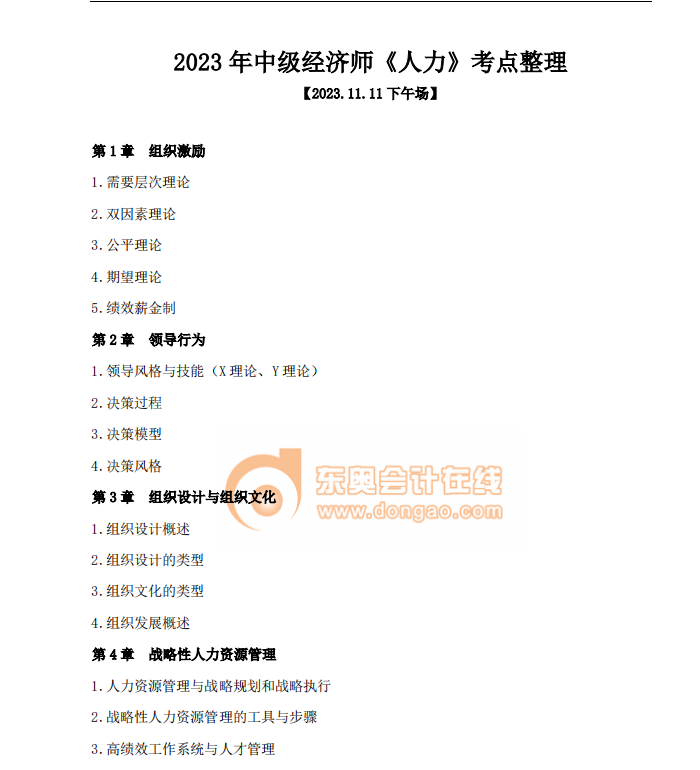 “《人力資源》2023年11月11日-12日考點整理”