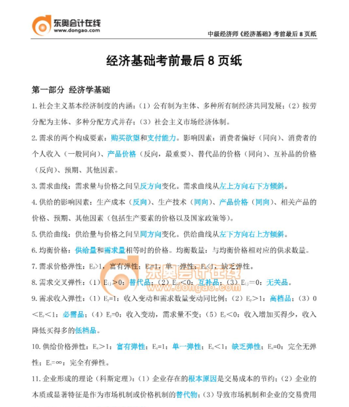?《經(jīng)濟基礎(chǔ)知識》考前必背8頁紙?