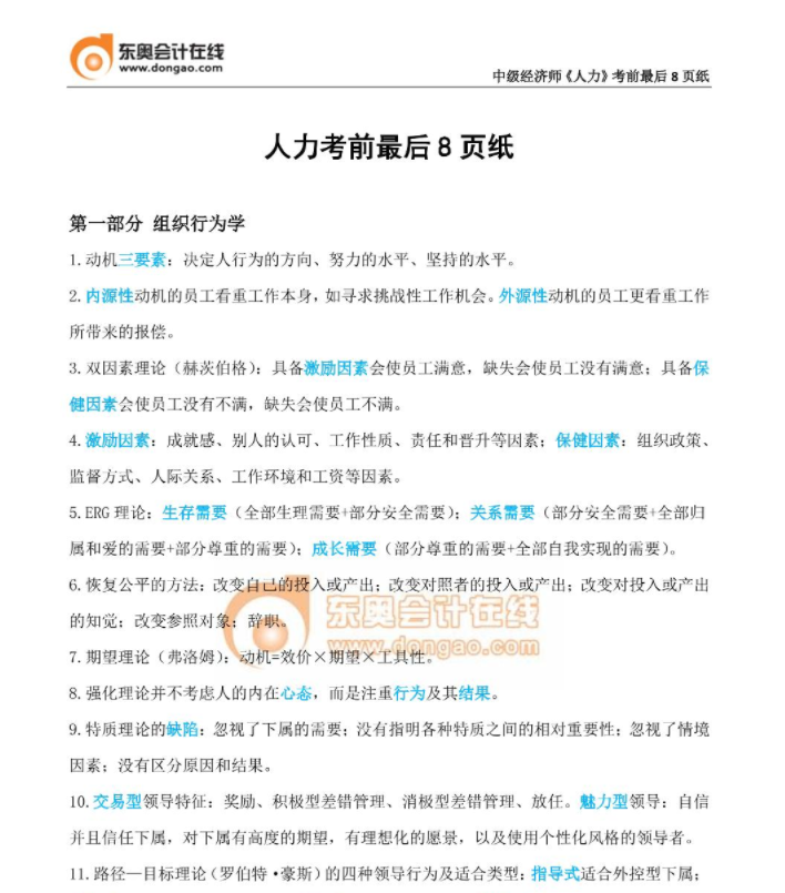 ?《人力資源》考前必背8頁紙?