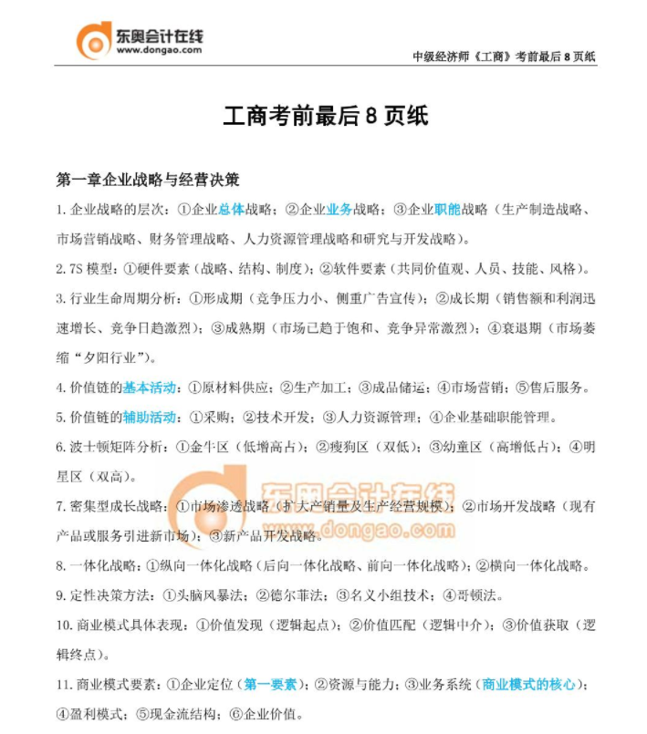 ?《工商》考前必背8頁紙?