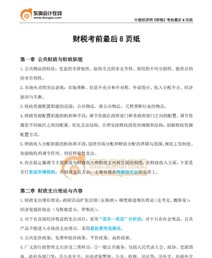?《財政稅收》考前必背8頁紙?