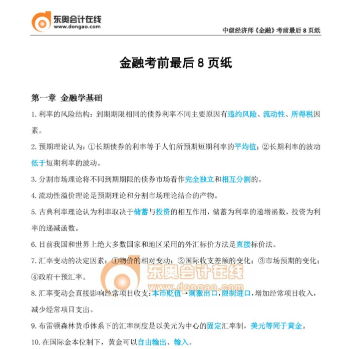 ?《金融》考前必背8頁紙?