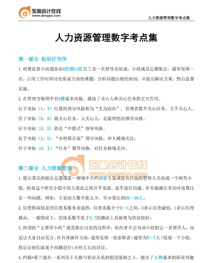《人力資源》數(shù)字考點集