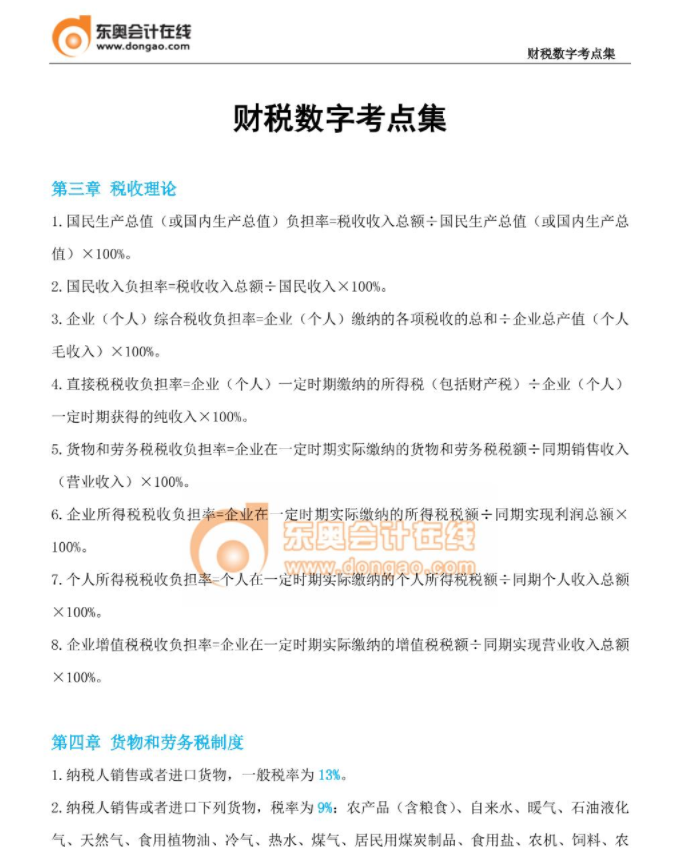 《財政稅收》數(shù)字考點集