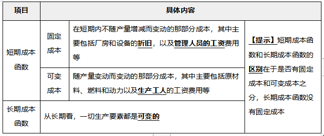 考點(diǎn)4:成本函數(shù)和成本曲線