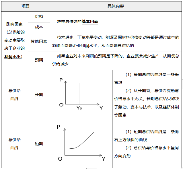 總需求曲線 | (1)假定其他因素不變,只分析價(jià)格總水平與總需求的關(guān)系??傂枨笄€是向右下方傾斜的 (2)價(jià)格總水平對消費(fèi)、投資和出口的需求的影響 ①財(cái)富效應(yīng):由價(jià)格總水平的變動(dòng)引起居民收入及財(cái)富的實(shí)際購買力的反向變動(dòng),從而導(dǎo)致總需求反向變動(dòng)的現(xiàn)象 ②利率效應(yīng):由價(jià)格總水平變動(dòng)引起利率變化,利率與投資、消費(fèi)及總需求的反方向變化的現(xiàn)象 ③出口效應(yīng):由價(jià)格總水平通過匯率變動(dòng)影響出口需求的變化并與總需求呈反方向變化的現(xiàn)象 |