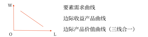 完全競爭生產(chǎn)者要素需求曲線 | 要素需求曲線、邊際收益產(chǎn)品曲線和邊際產(chǎn)品價值曲線 | 右下方傾斜曲線 |