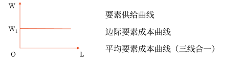 完全競爭生產(chǎn)者在購買要素時是完全競爭的,即生產(chǎn)者完全是要素市場價格的接受者。所以,生產(chǎn)者面臨的要素供給曲線是一條水平線。