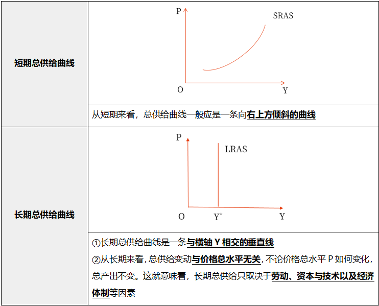 由于決定供給的價格和成本中的工資在長期具有靈活性,在短期具有黏性或缺乏彈性,因此總供給曲線分為長期和短期兩種形式。