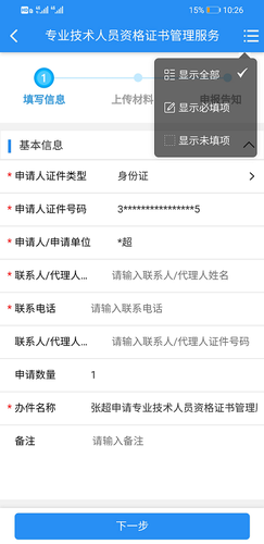 4.進(jìn)入界面點(diǎn)擊右上角選擇“顯示全部”(備注中請(qǐng)注明領(lǐng)取何種專(zhuān)業(yè)技術(shù)資格證書(shū)。)