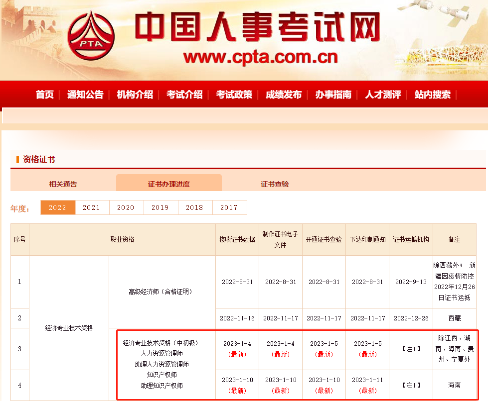 2、海南:2023年1月10日起開通證書查驗,2023年1月11日下達(dá)證書印制通知。