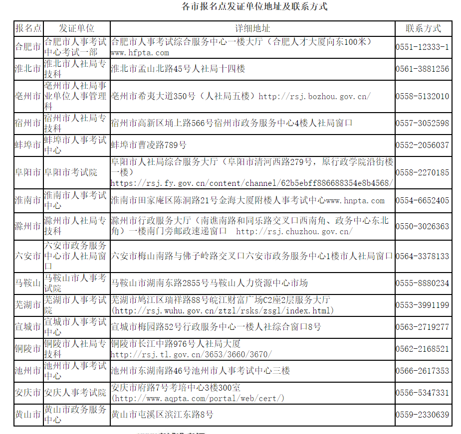 附:各市報(bào)名點(diǎn)發(fā)證單位地址及聯(lián)系方式