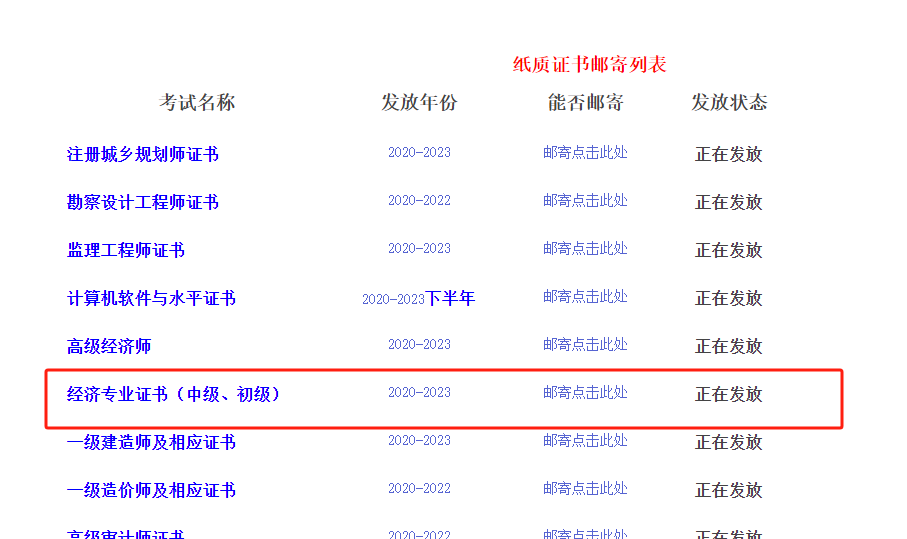 四川省直2023年中級經(jīng)濟師紙質(zhì)證書正在發(fā)放