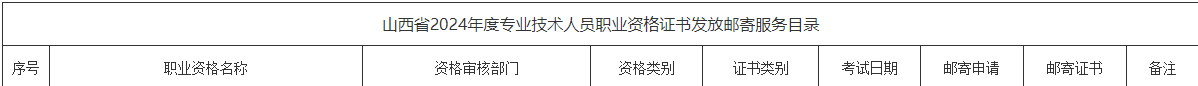 山西省2024年度專業(yè)技術人員職業(yè)資格證書發(fā)放郵寄服務目錄