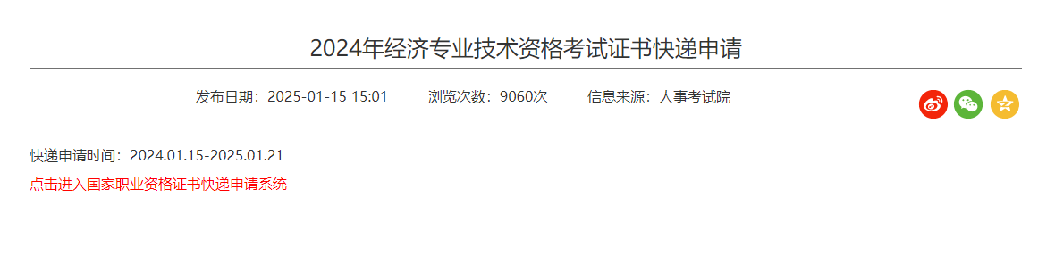 浙江2024年中級經(jīng)濟師考試合格證書郵寄申請中!