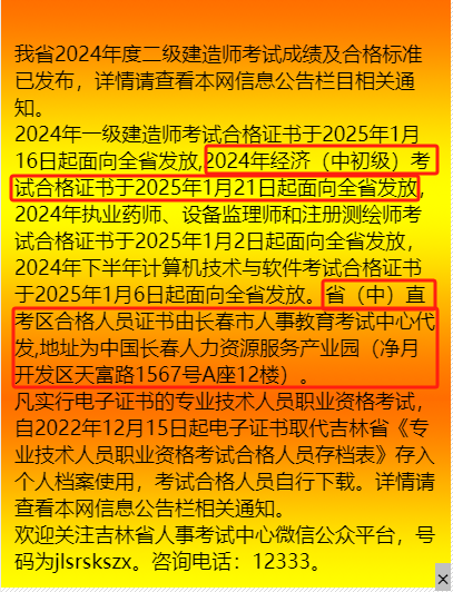 吉林2024年中級經(jīng)濟(jì)師證書發(fā)放通知