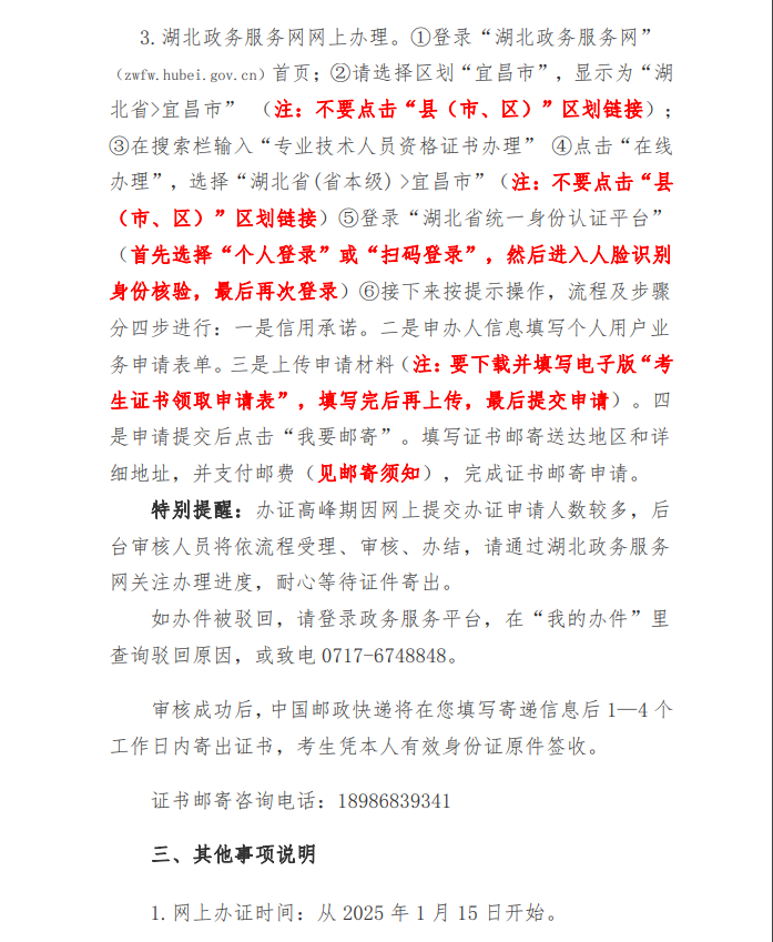 湖北宜昌2024年中級經(jīng)濟(jì)師證書辦理通知已發(fā)布!宜昌2024年中級經(jīng)濟(jì)師證書辦理采取三種方式,現(xiàn)場領(lǐng)取、郵政服務(wù)平臺上辦理、湖北政務(wù)服務(wù)網(wǎng)上辦理,現(xiàn)場及網(wǎng)上辦理從2025年1月15日開始,具體的要求及流程如下。