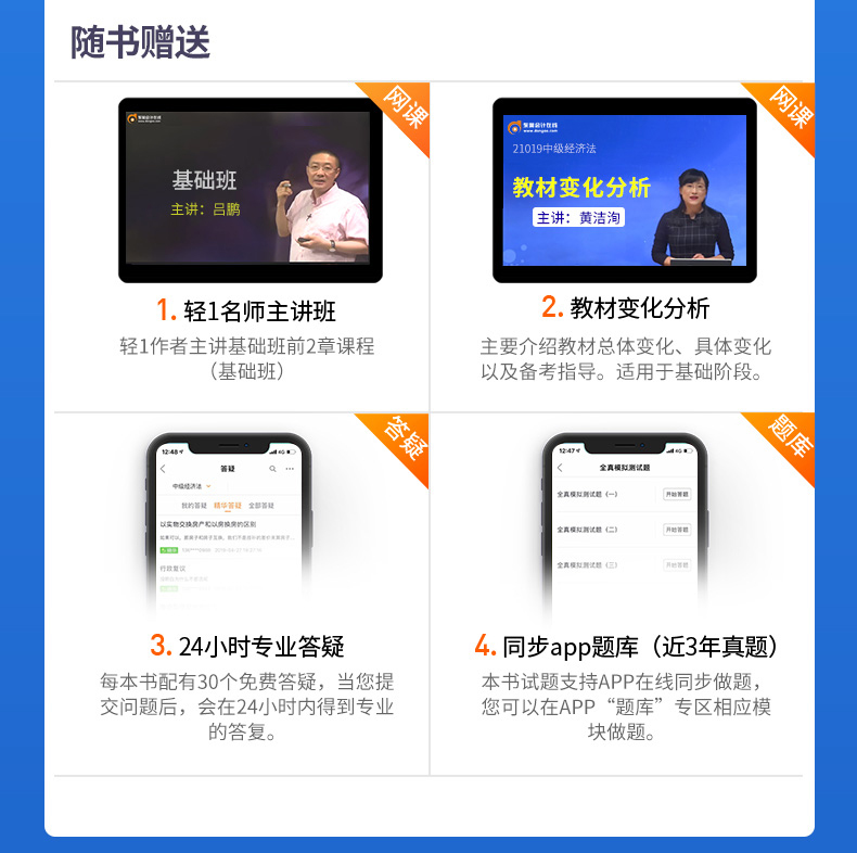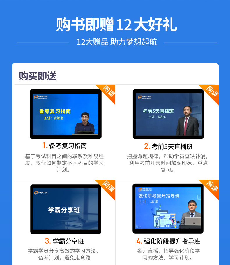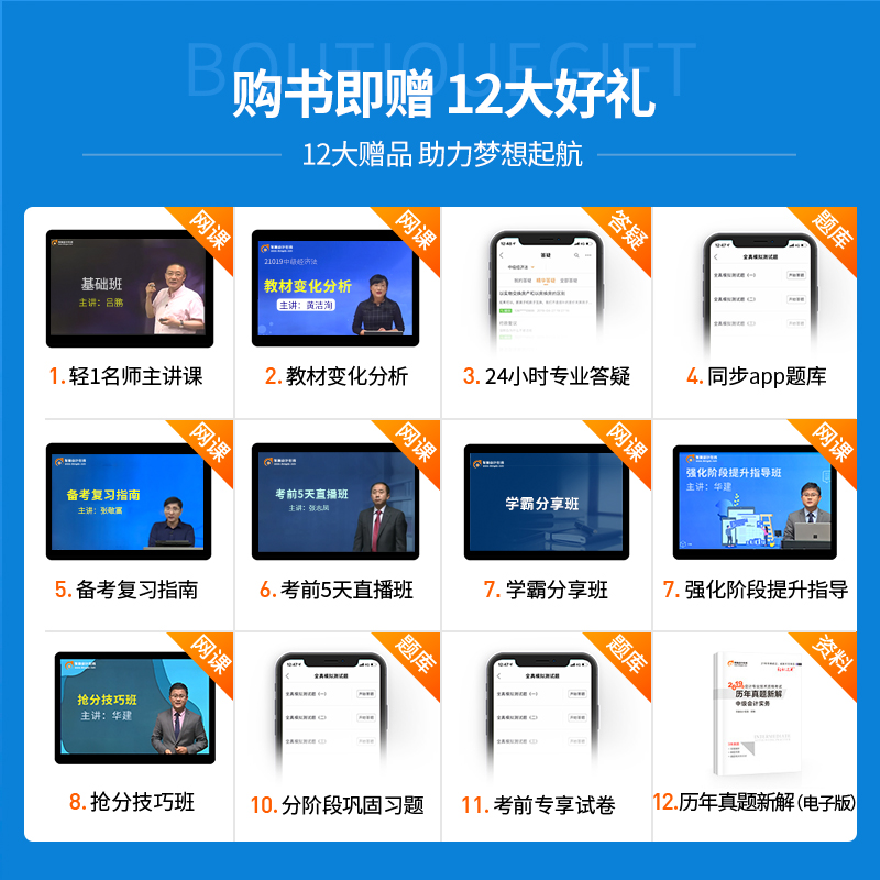 寶貝收到了。初級(jí)考試就用的東奧的輔導(dǎo),中級(jí)繼續(xù),書是正版不錯(cuò)~ 按網(wǎng)頁(yè)介紹的兩種領(lǐng)取贈(zèng)品方式都成功了 試聽了送的課件 中級(jí)學(xué)起來(lái)確實(shí)比初級(jí)要難點(diǎn) 排版跟初級(jí)差不多的模式 錯(cuò)過報(bào)名先買輕一看看 基礎(chǔ)最重要 書已到就要靜下來(lái)心來(lái)看書了 希望來(lái)年報(bào)名后一次三科全過~~