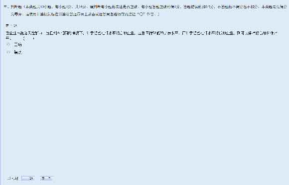 判斷題答題時,考生直接用鼠標(biāo)點(diǎn)擊備選項中認(rèn)為正確的選項前的按鈕即可。如需修改答案,用鼠標(biāo)點(diǎn)擊其他備選項前的按鈕,原選擇的選項將被自動替換。如需撤銷已經(jīng)選中的選項,再次點(diǎn)擊該選項前的按鈕即可。
