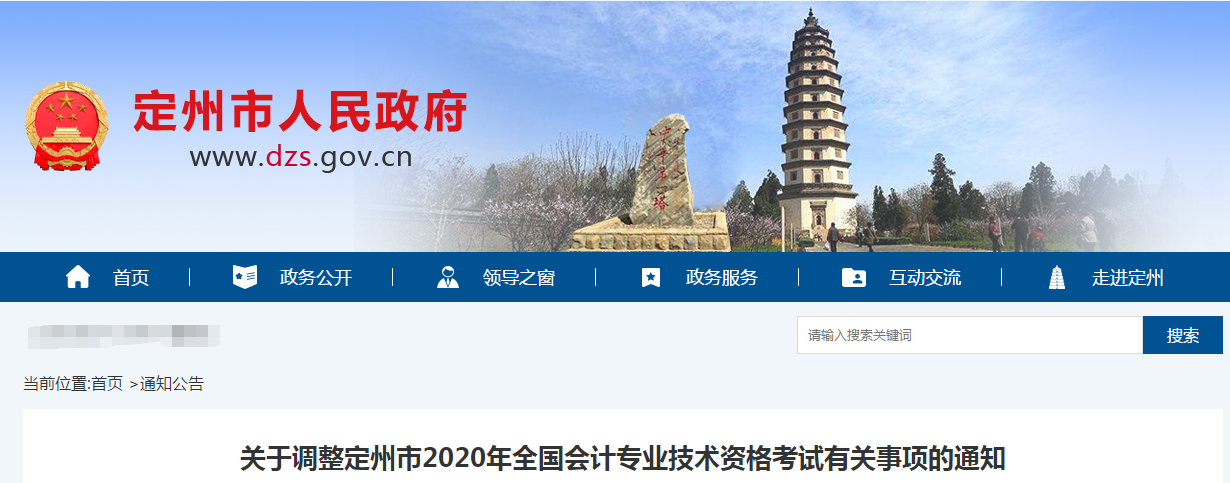 關(guān)于調(diào)整定州市2020年全國會(huì)計(jì)專業(yè)技術(shù)資格考試有關(guān)事項(xiàng)的通知
