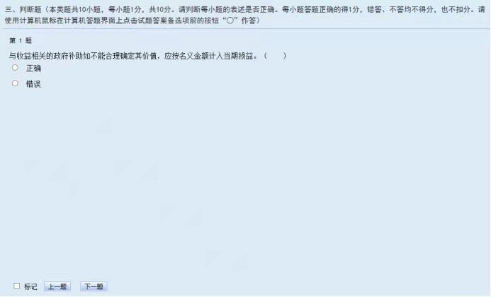 請判斷每小題的表述是否正確。每小題答題正確的得1分,錯答、不答均不得分,也不扣分。請使用計算機鼠標在計算機答題界面上點擊試題答案備選項前的按鈕“○”作答。