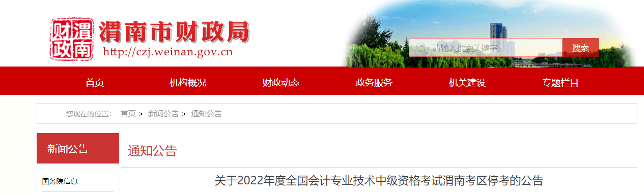 陜西省渭南市2022年中級(jí)會(huì)計(jì)考試停考