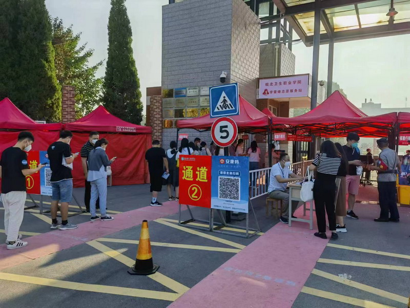工業(yè)學(xué)校2名外地考生因未按要求做核酸檢測(cè),衛(wèi)生職業(yè)學(xué)院1名考生因來自滁州,經(jīng)疾控防疫研判,分別啟用隔離考場(chǎng)完成考試。