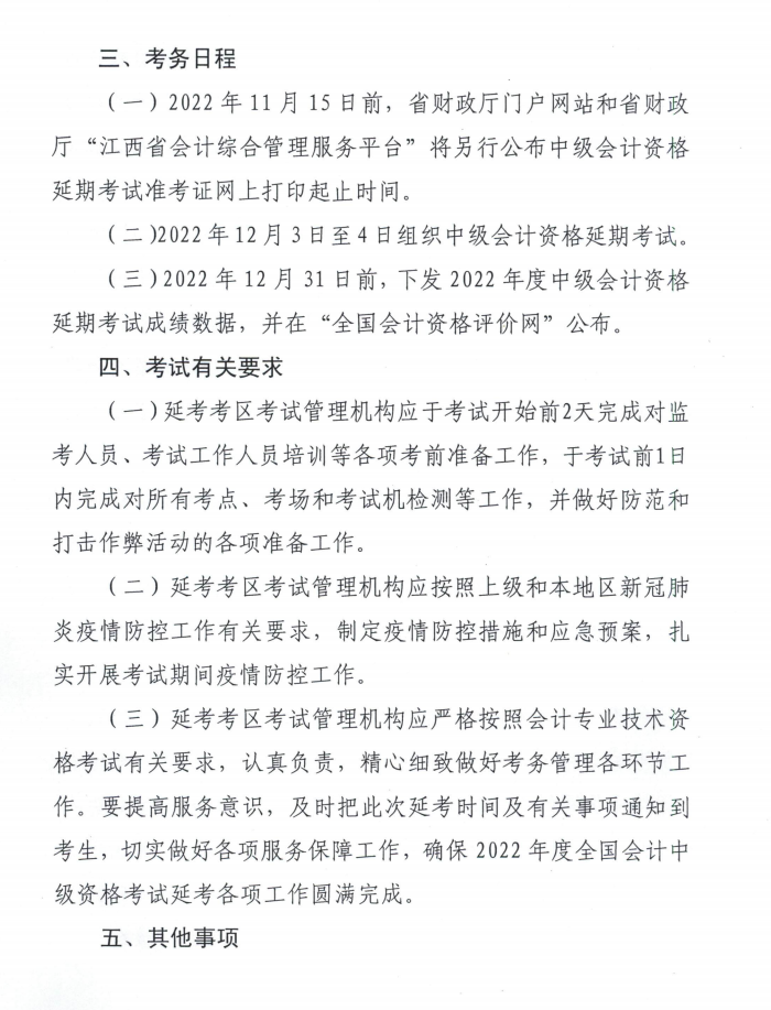 關于2022年度全國會計專業(yè)技術中級資格考試(江西考區(qū))延期考試安排及有關事項的通知