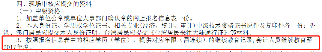 4、2018年部分地區(qū)中級會計(jì)資格審核需提供繼續(xù)教育記錄