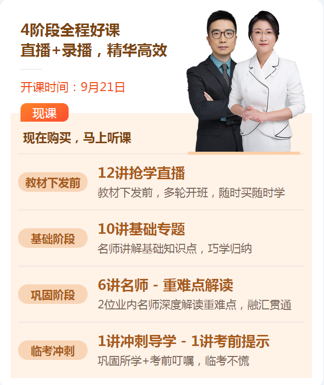 在教材下發(fā)前,不僅能提前預習,還能提前聽課,通過4個階段的課程,讓你對21年中級考試有一個整體的把握!