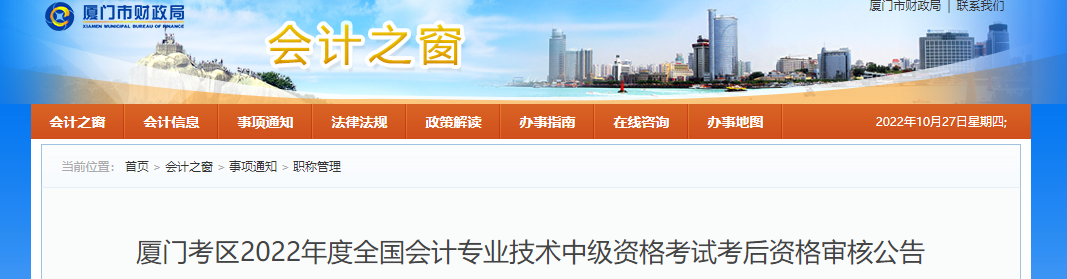 廈門考區(qū)2022年度全國會計專業(yè)技術(shù)中級資格考試考后資格審核公告
