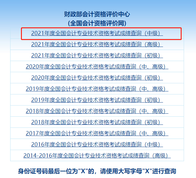 ■ 中級會計成績查詢入口:全國會計資格評價中心【一鍵直達】