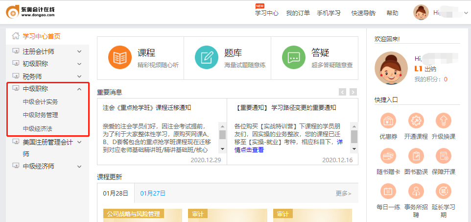 第二步:點擊“學習中心”進入頁面,未登錄的小伙伴可以登錄賬號進行聽課。