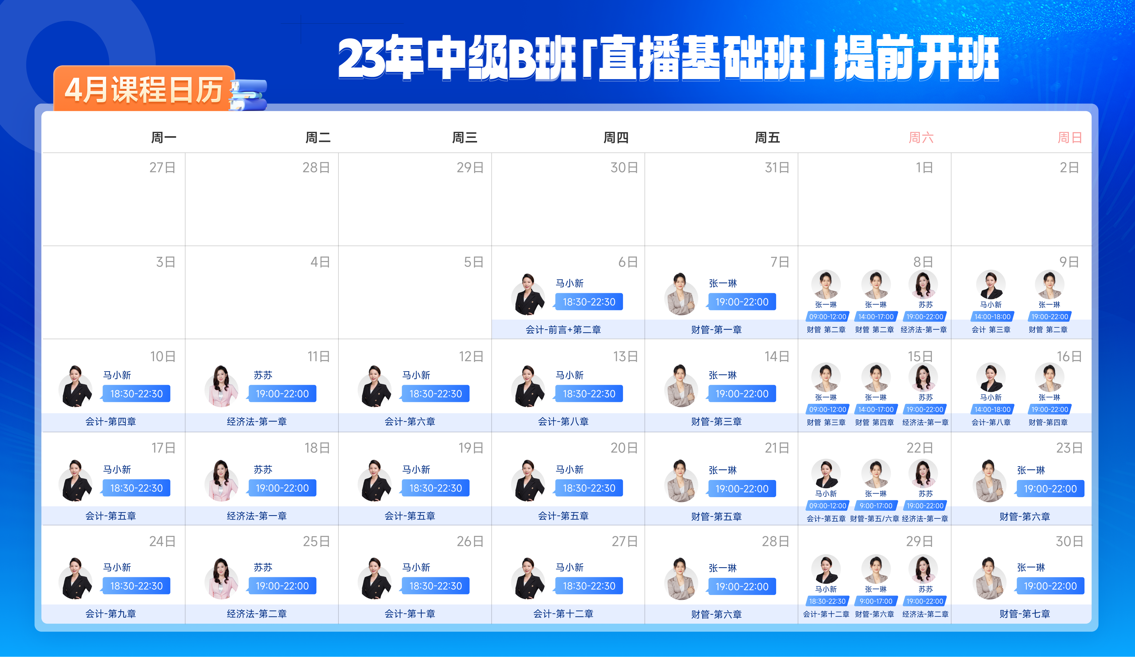 中級(jí)會(huì)計(jì)4月課程日歷