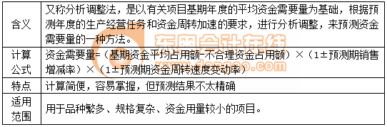 【提示】因素分析法是假設銷售增長與資金需用量同向變動;資金周轉(zhuǎn)速度與資金需用量反向變動。