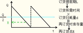 為了保證無缺貨,需要在存貨為0之前訂貨即提前訂貨