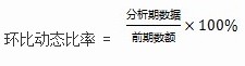 (2) 環(huán)比動態(tài)比率,是以每一分析期的數(shù)據(jù)與上期數(shù)據(jù)相比較計算出來的動態(tài)比率。其計算公式為: