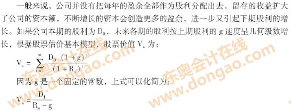 從上式可以看出,股票投資內(nèi)部收益率由兩部分構(gòu)成;一部分是預(yù)期股利收益率D1/P0,另一部分是股利增長率g。