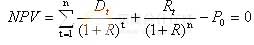 如果投資者不打算長期持有股票,而將股票轉(zhuǎn)讓出去,則股票投資的收益由股利收益和資本利得(轉(zhuǎn)讓價差收益)構(gòu)成。這時,股票投資收益率是使股票投資凈現(xiàn)值為零時的貼現(xiàn)率,計算公式為: